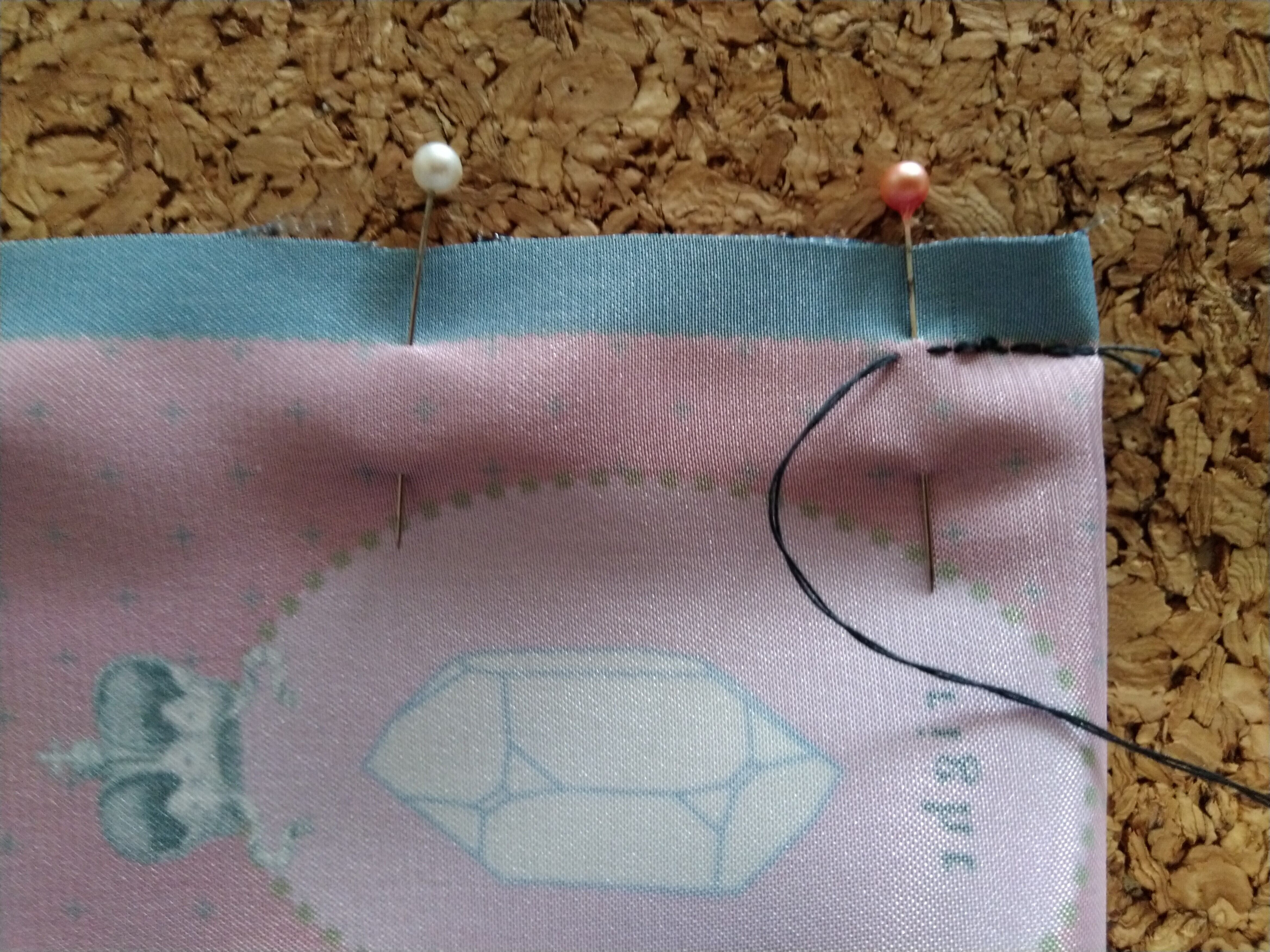 ・中表(裏返し)にあわせて待ち針で固定する(画像参照)